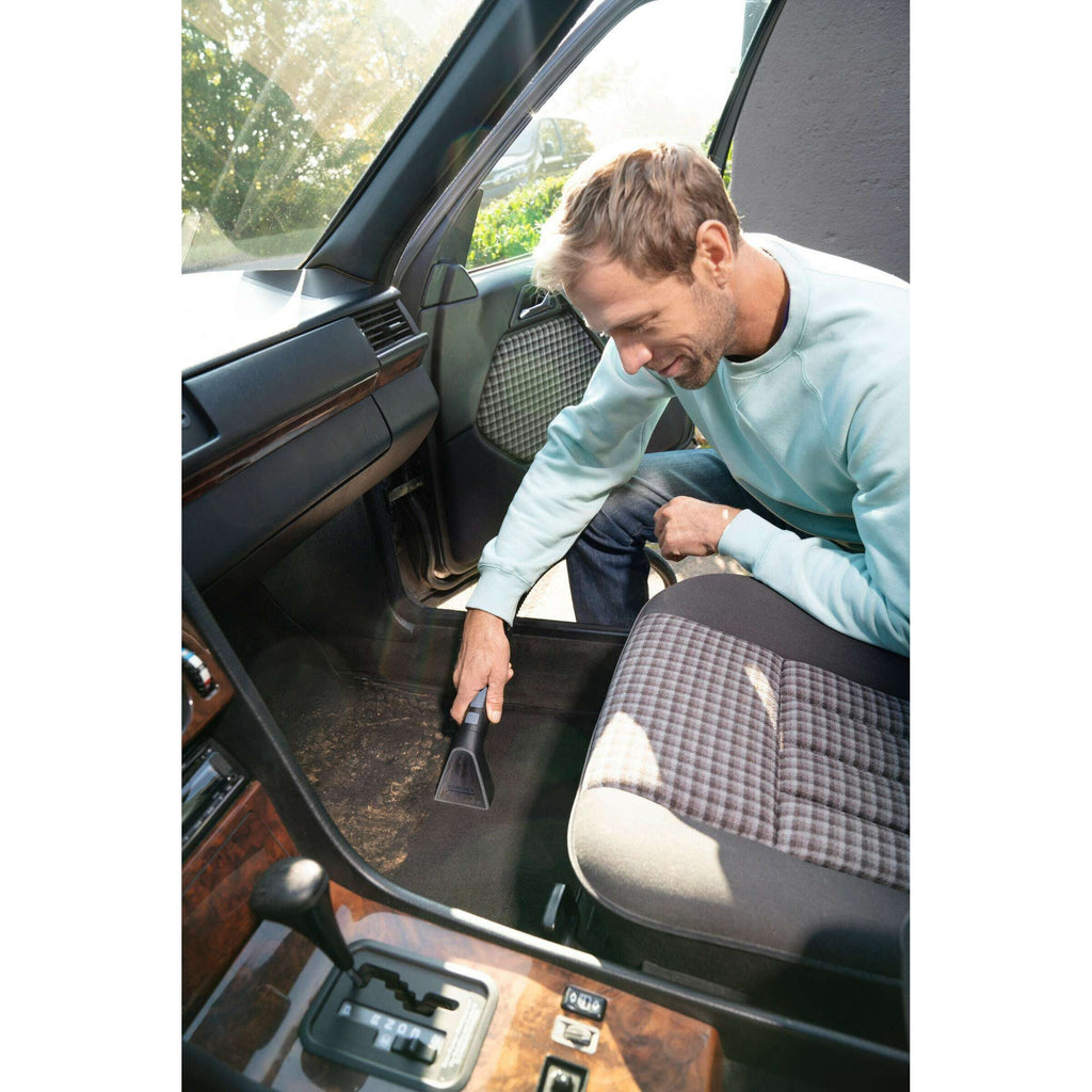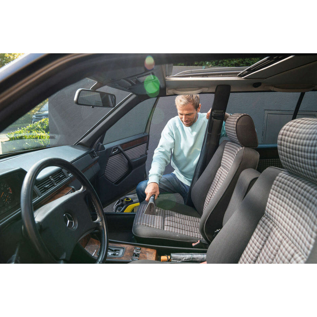 تنظيف عميق للألياف مع أقصى قدر من حرية الحركة: ينظف منظف الرذاذ SE 3-18 Compact الأسطح النسيجية بدقة ودون أي بقايا. بفضل تصميمه المدمج، لا يُعد الجهاز عمليًا فحسب، بل يُمكن استخدامه أيضًا في حالة عدم وجود مقبس كهربائي قريب، بفضل بطارية Kärcher 18 فولت. يتيح لك هذا تنظيف الجزء الداخلي من السيارة في غضون 12 إلى 24 دقيقة فقط. وهكذا، تُزيل الأوساخ من مقاعد السيارة، وسجاد الأرضية، وصندوق السيارة، بالإضافة إلى أثاث الحدائق والمفروشات في لحظة - بنفس قوة منظفات الرذاذ السلكية. كما يضمن خرطوم الشفط الطويل والمرن المزود بخرطوم عامل التنظيف الداخلي راحة ومرونة كبيرتين، حتى في الأماكن التي يصعب الوصول إليها. حتى بعد التنظيف، سيُبهرك منظف الرذاذ بوظيفة الشطف الصحية، التي تُزيل الأوساخ من الجهاز والخرطوم، وبالتالي تمنع تكون البكتيريا والروائح الكريهة. يتماشى هذا تمامًا مع شعار "سيارة نظيفة، جهاز تنظيف نظيف".