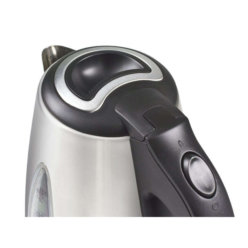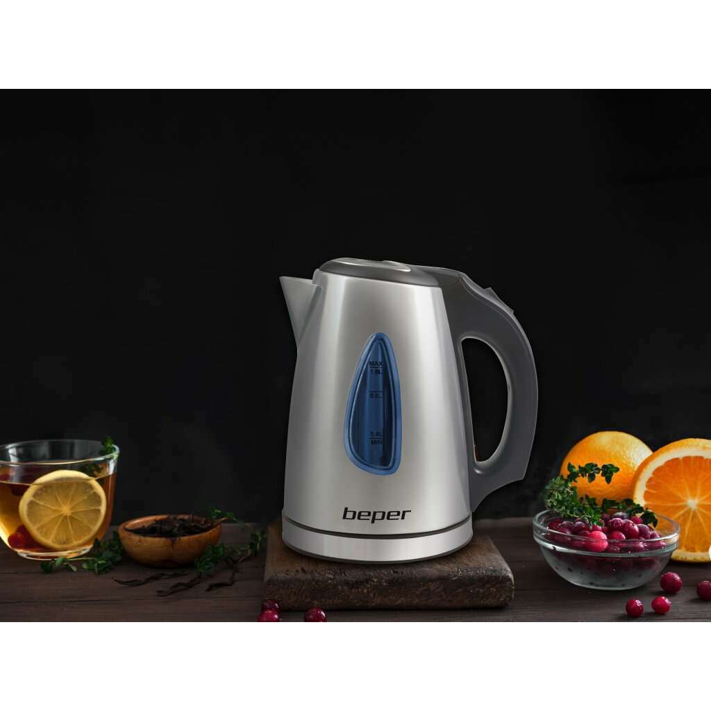غلاية كهربائية لاسلكية عملية لتقديم المشروبات الساخنة بسهولة على الطاولة. إبريق من الفولاذ المقاوم للصدأ سعة لتر واحد. عناصر تسخين مخفية لا تلامس الماء لضمان أعلى مستويات النظافة، ومؤشر ضوئي أزرق للتشغيل. مزودة بفلتر قابل للإزالة ومؤشر مدرج لمستوى الماء. إيقاف تشغيل تلقائي عند الوصول إلى درجة الحرارة المطلوبة أو عند عدم وجود سوائل. قاعدة مزودة بملف لف السلك. زر تشغيل على المقبض.