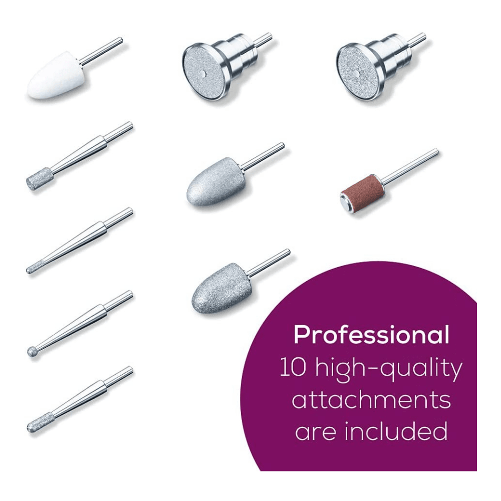 توفر لك محطة مانيكير وباديكير MP 100 رعاية احترافية للأظافر والقدمين في المنزل. قومي ببردي وتلميع أظافرك وقدميك للحصول على مظهر أنيق.